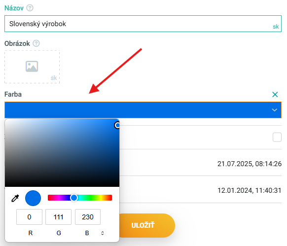 - Prejdite do sekcie Nastavenia / Produkty / Štítky,
