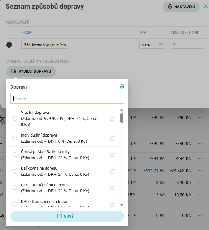 V názve prepravy je teraz k dispozícii kód prepravy, takže môžete vyhľadať požadovanú prepravu, ktorú máte napríklad napojenú na inom externom systéme.