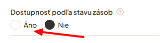 - Zaškrtnite funkciu Dostupnosť podľa stavu zásob na Áno.