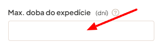 - Nie je skladom, Na dotaz alebo Vlastné: je potrebné zadať hodnotu do poľa Max. doba do expedície. Tá sa bude generovať do feedov ako hodnota pre tag DELIVERY_DATE.