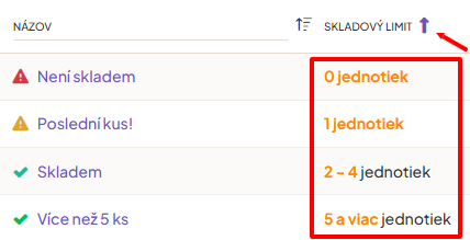 - Do kolónky Skladový limit napíšte hodnotu 5.