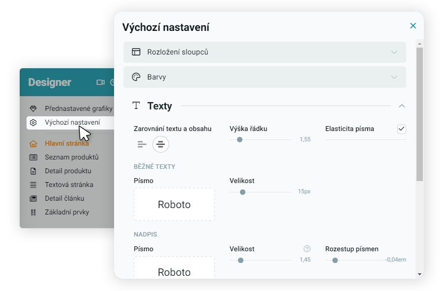 Nastavte si základné parametre vzhľadu svojho e-shopu. Prispôsobte si najdôležitejšie prvky, okolo ktorých postupne postavíte svoj unikátny internetový obchod.